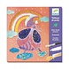 Inhoud: 4 kleurplaten (15 x 20 cm), 16 tubes met kralen, 3 tubes lijm, 1 penseel, 4 houten stokjes, 3 plastic bakjes, 1 klein plastic bordje, 1 stap-voor-stap instructieboekje in kleur.